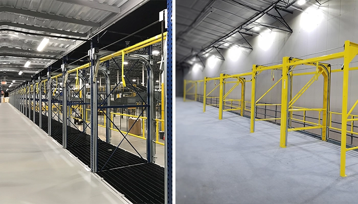 A free standing version of our popular Rollback Bay gate to protect workers on elevated access points for material transfer. Easy-to-use and install. Protects without hindering productivity. Two-gate system means one gate is always closed and OSHA compliant fall protection is in place.