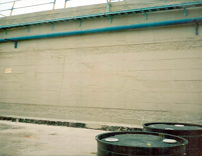 Brewery wastewater typically contains a mixture of caustic soda, phosphoric acid, nitric acid, and organic compounds such as ethanol and volatile fatty acids, which accelerate concrete degradation. An inspection revealed considerable corrosion and erosion of the concrete structure, especially in areas exposed to the effluent.